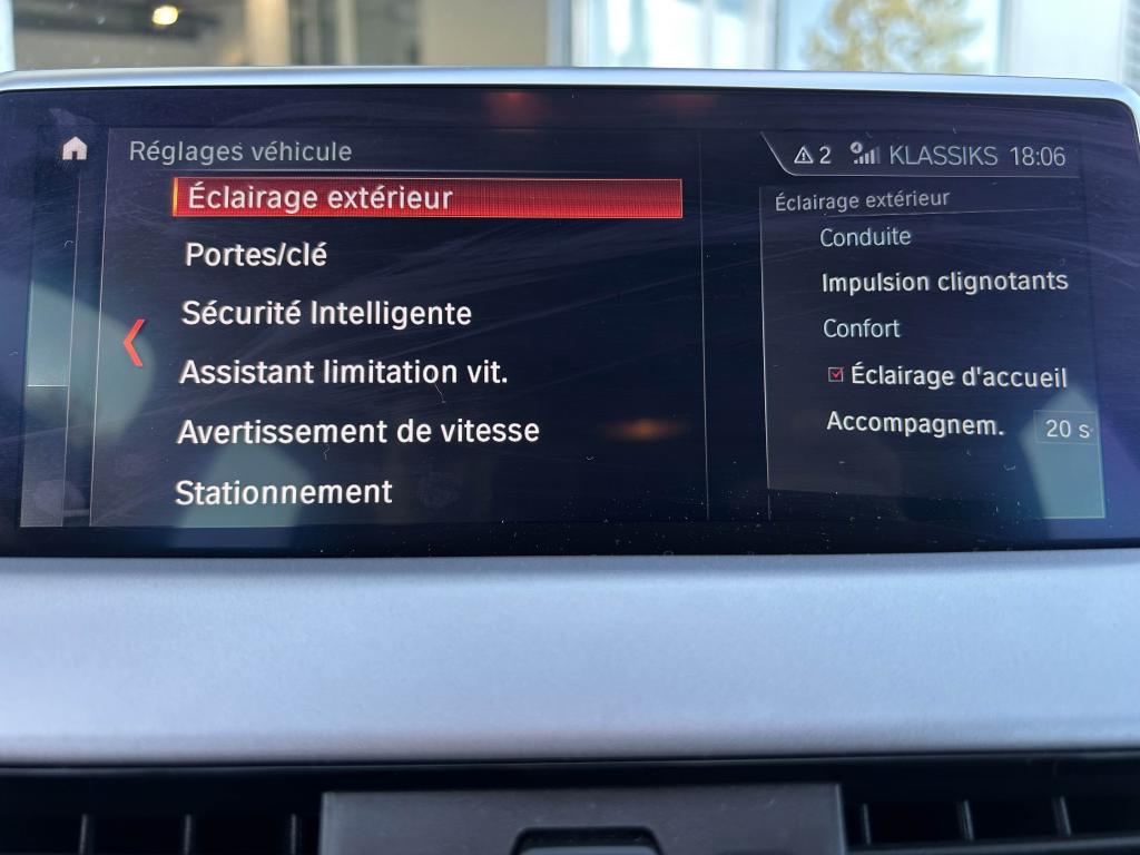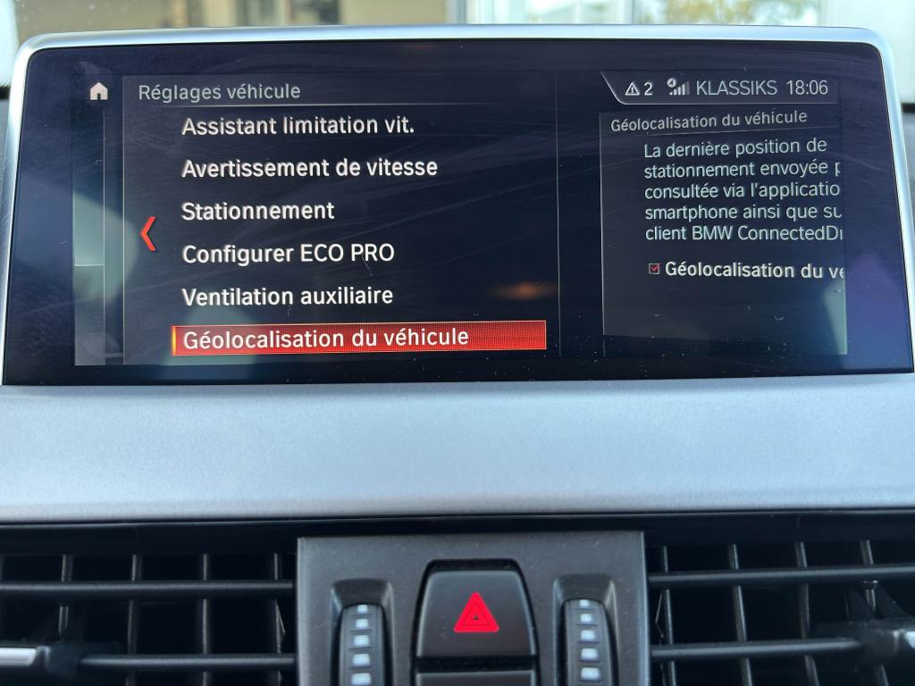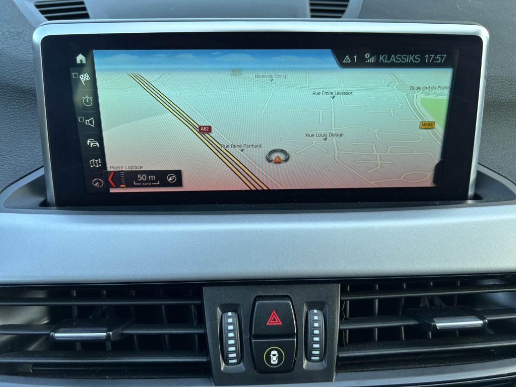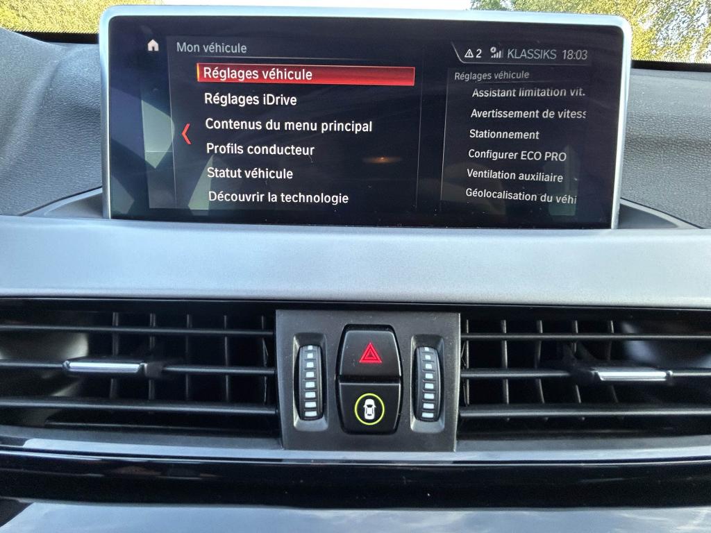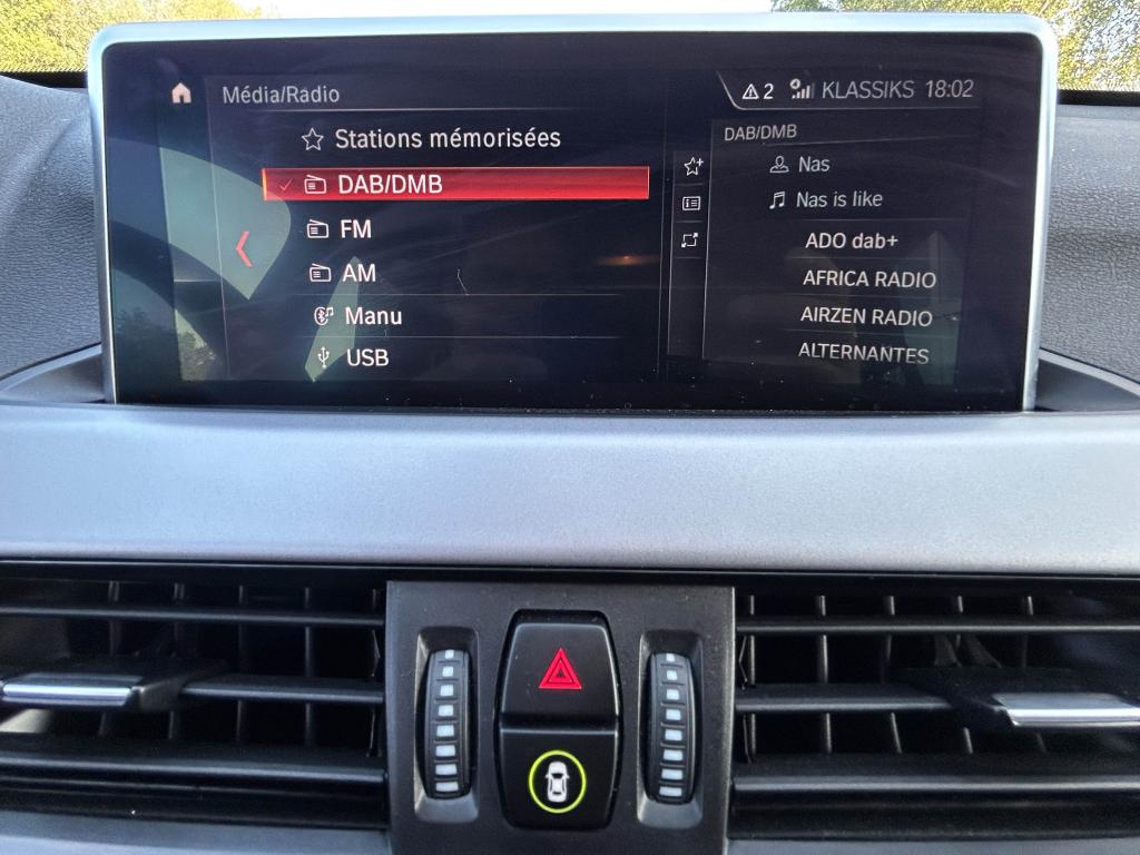 6 haut-parleurs dont 2 caissons de basse sous les sièges avant, amplification 4 x 25wABS avec aide au freinage d'urgenceAccoudoir central avant avec compartiment de rangement, réglable sur 5 positionsAirbag passager déconnectableAirbags conducteur et passagerAirbags de tête avant et arrière avec voile de protection contre les débris de verreAirbags latéraux avantAluminium Line satinéAntenne de toit « aileron de requin »Anti-démarrage électroniqueAppel d'Urgence IntelligentAttention Assist : système de détection de somnolenceAutoradio BMW Professional avec écran couleur 6,5”, 8 touches de favoris programmables et “Controller” iDrive avec touches de raccourci, compatibilité MP3, double Tuner RDS FM, info-routeAvertisseur de risque de collisionBanquette arrière rabattable 40/20/40Boîte à gants verrouillable éclairéeBoîte de vitesses automatique à double embrayage à 7 rapportsBuses de lave-glace chauffantesCarnet d'entretien électronique embarqué "BMW Service History"Ceintures 3 points à toutes les places avec limiteur d’effortClés radiocommandées à mémorisation automatique des réglages "Personal Profile"Climatisation automatique bi-zone, avec aérateurs à l'arrièreCommande électrique du hayonConstruction allégée intelligenteContrôle de la TransmissionContrôle dynamique de la stabilité DSCContrôle Dynamique de la Traction DTCCrochets de fixation pour cintre (x2 à l'arrière)Démarrage sans clé via le bouton Start/StopDétecteur de pluie et allumage automatique des projecteursDéverrouillage électrique du hayon via la poignée ou la clé radiocommandéeDifférentiel à blocage électronique pour optimiser la motricitéDiffuseurs aérodynamiques avant "Air Curtain"Direction Servotronic à assistance électrique variable selon la vitesseEclairage de l'habitacle à l'avant, à l'arrière et dans le coffreEcrous antivolFeux antibrouillard arrièreFeux de jour à LEDFeux de stop dynamiques clignotantsFixations Isofix aux places latérales arrièreFonction d'arrêt et de redémarrage automatique du moteurFonctions "Ma BMW à distance"Frein de parking électromécaniqueGrilles de calandre cerclées de chrome avec 7 barreaux verticaux noirsIndicateur de limitation de vitesseInformation Trafic en Temps Réel RTTIInserts décoratifs Oxidsilber mat soulignés de noir brillantInterface Bluetooth avec fonction streaming audioJantes en alliage léger 18'' style 566 à rayons en YKit de mobilité BMWKit rangementLimiteur et régulateur de vitesse avec maintien de la vitesse en descenteMesure individuelle de pression des pneumatiquesMontant central extérieur noir brillantNavigation multimédia BusinessNotice d'utilisation intégréeOrdinateur de bord avec Check-Control et indicateur de température extérieurePack SimpliCityPoignées de portes couleur carrosseriePort USB avec connectivité iPodProjecteurs Full LEDRails de toit Aluminium Line satinéRétroviseurs extérieurs à réglages électriques (asphérique côté conducteur), dégivrants avec répétiteur de clignotant intégréRétroviseurs extérieurs couleur carrosserieSélecteur de mode de conduite - 3 modes : "ECO PRO", "Confort" et "Sport"Sellerie tissu "Grid"Services Après-Vente connectés BMW TeleServicesServices BMW ConnectedDriveSeuils de portes signés "BMW"Sièges conducteur et passager réglables en hauteurSortie d’échappement simple à gauche, ronde et chromée, Ø 90 mmSystème anti-collision à basse vitesseSystème de récupération de l'énergie au freinageTechnologie BMW TwinPower Turbo avec injection directeTeinte de carrosserie métalliséeTouches multifonctions sur le volantTriangle de présignalisation avec trousse de premier secoursTuner DABVerrouillage automatique des portes dès 15km/hVerrouillage centralisé des portes, du coffre et de la trappe à carburantVitres avant et arrière électriques à impulsion avec système ant-ipincementVolant réglable en hauteur et en profondeurVolant Sport gainé cuir