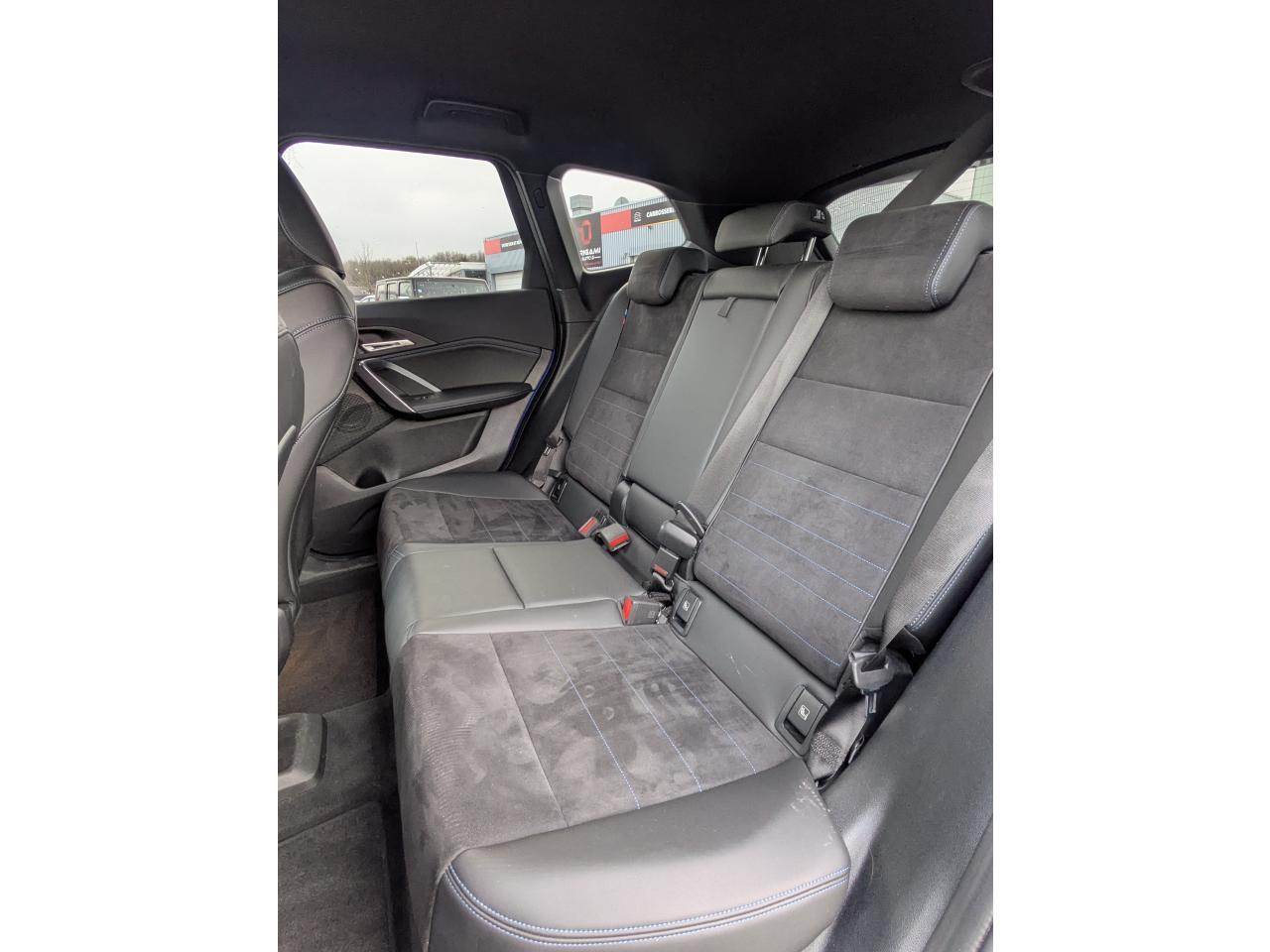 Accoudoir central arrièreAccoudoir central avant avec commandes intégréesActive GuardAirbag central entre les sièges avantAirbags frontaux conducteur et passager (déconnectable côté passager)Airbags latéraux avantAirbags rideaux de tête pour places avant et latérales arrièreApple CarPlay / Google Android AutoAppuis-tête avant et latéraux arrière réglables en hauteurAvertisseur sonore pour piétonsBanquette arrière rabattable 40/20/40BMW Live Cockpit Navigation PlusCâble recharge professionnel Mode 3 (T2-T2) pour la recharge publiqueCapteurs d'impactsCarte SIM 4G LTE pour les Services ConnectedDriveCeintures de sécurité 3 points à toutes les placesCiel de pavillon M AnthraciteClés radiocommandées à mémorisation automatique des réglages "Personal Profile"Clignotants LED intégrés aux feux de jourClimatisation automatique bi-zone avec microfiltreCommande électrique du hayonConsole centrale avec 2 portes gobeletContour de vitres noir matContrôle Dynamique de la Stabilité DSC+ avec fonctionnalités étenduesDémarrage sans cléDétecteur de pluie et allumage automatique des projecteursDeux crochets escamotables pour accrocher des sacs, filet à bagages et prise 12 V dans le coffreDirection à assistance électrique servotronicDispositif d'éclairage ‘'Follow me home''Ecran WidescreenEcrous antivolEléments extérieurs et intérieurs M SportFeux de sortie de porte avant (porte ouverte)Feux et clignotants arrière à technologie LEDFonction cargo : réglage de l'inclinaison de la banquette arrière à 12° (Jusqu'à 100 litres de chargement additionnel)Fonction hotspot WiFiFonction Stop-Start automatiqueFrein de parking électromécanique avec fonction "Automatic Hold"Grilles de calandre cerclées de chrome avec barreaux verticaux noirsHabillage Luxury : haut de la planche de bord et panneaux de porte en Sensatec noir avec surpiqûresInserts de couleur Noir brillant sur la console centraleInserts décoratifs M Aluminium HexacubeInterface téléphone bluetooth avec port USBJantes en alliage léger 18" style 838 M bicolores à rayons doublesKit EclairageKit rangementLève-vitres avant et arrière électriques avec commande par impulsion et sécurité enfantsMesure individuelle de pression des pneumatiquesMy Modes avec 5 modes de conduite: Personnel, Efficient, Sport, Relax, ExpressiveNorme GSR 2 (General Safety Regulation)Palettes au volantPare-choc arrière avec inserts chromés en LPare-choc avant avec air curtains en noir matPark AssistPersonal eSimPhares à LEDPoignées de portes affleurantesPrises 12V (console centrale avant et coffre)Rails de toit Aluminium Line satinéRangement additionel sous plancher amovibleRégulateur de vitesse avec fonction freinage et limiteur de vitesseRétroviseurs extérieurs chauffant avec clignotant intégréRétroviseurs extérieurs couleur carrosserieRétroviseurs extérieurs rabattables électriquementSellerie Alcantara / Veganza Schwarz avec surpiqûres contrastantes bleuesServices Après-Vente connectés BMW TeleServices (durée de vie de la voiture)Services Connectés BMW DigitalShadow Line M brillantSièges avant réglables manuellement longitudinal / hauteur d’assise / inclinaison du dossierSièges avant sportSortie d'échappement simple non visibleSpoiler arrière avec feu stop à LEDSuspension Adaptative MSystème audio à 6 haut-parleursSystème d'éclairage de bienvenueSystème de détection de la somnolence du conducteurTapis de sol en veloursTouches multifonctions sur le volantVerrouillage centralisé des portes, du coffre et de la trappe à carburantVolant M gainé cuirWelcome Pack BMW avec carte BMW Charging