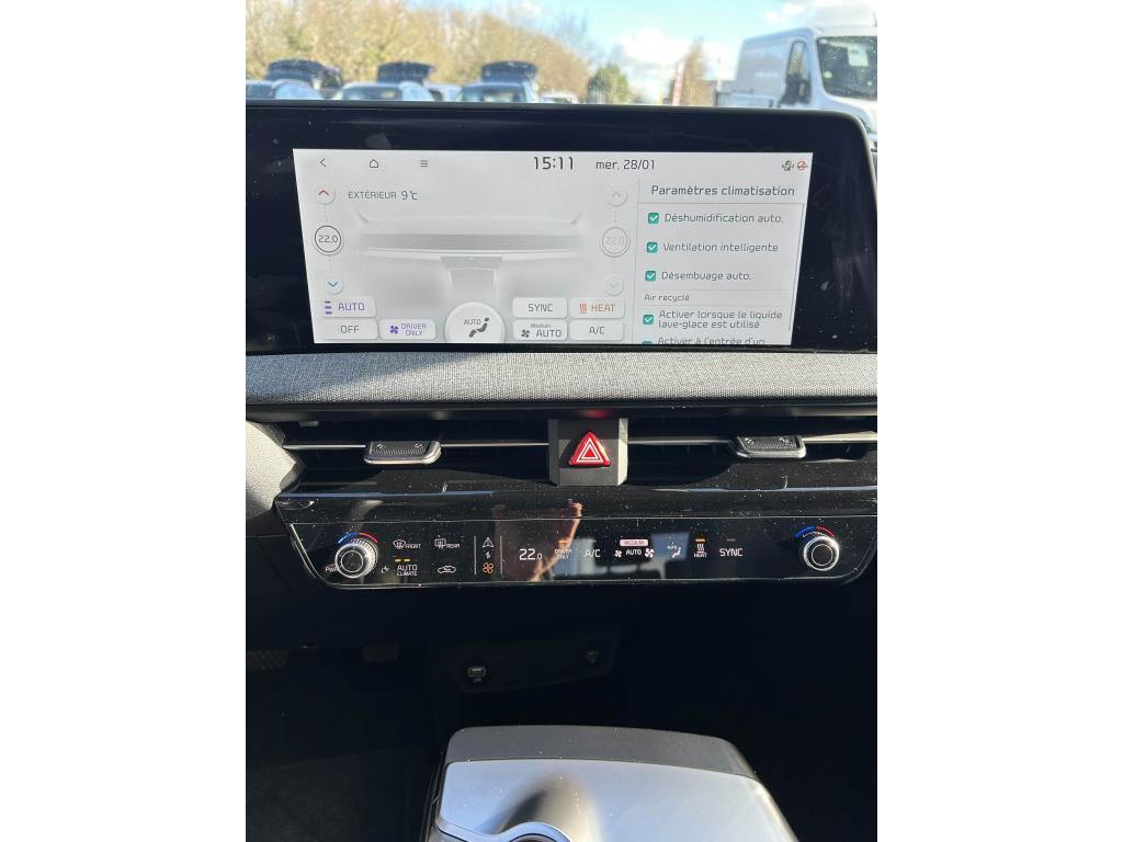 6 haut-parleursABS avec répartiteur électronique de freinage (EBD)Accoudoir central arrière avec porte-gobelets intégrésAide au maintien dans la file (LKA)Aide au stationnement arrièreAirbag latéral centralAirbags frontaux et latéraux avantAirbags rideaux avant/arrièreAllumage automatique des projecteursAppel d'urgence - EcallAppuie-tête avant et arrière règlables en hauteurAssistance active à la conduite dans les embouteillagesAssistance active à la conduite sur autoroute (HDA)Assistance au démarrage en côteAutoradio avec commandes au volantBanquette arrière rabattable 40/60Buse de ventilation pour la 2ème rangée de siègesCâble de recharge type 2 (T2-T2) 32ACaméra de recul avec lignes de guidage activesCapteur de pluieClimatisation automatique bi-zoneCombiné d'instrumentation 100% digital 12.3''Connectique USB à l’avant de la console centraleConnectique USB au dos des sièges conducteur et passager avantContrôle de pression des pneus ( TPMS )Désembuage automatique du pare-briseEclairage intérieur à LEDEcran tactile couleur 12.3’’ avec sytème de navigation Europe et services connectés Kia Connect offerts pendant 7 ans, Android Auto et Apple CarPlayFeux arrière antibrouillard à LEDFeux de jour et feux arrière à LEDFrein de parking électrique avec fonction Auto-HoldIonity : accès privilégié au réseau de recharge haute puissance Ionity pendant un an (Ionity Power)Jantes alliage 19''KiaCharge : service dédié de recharge en itinéranceLève-vitres avant et arrières électriques, séquentiel et anti-pincement à l'avantPalettes de récupération d'énergie au volantPare-soleil avec miroir de courtoisie illuminé conducteur et passagerPeinture métalliséePhares avant Full LEDPlancher de coffre amoviblePoches aumônières au dos des sièges avant conducteur et passager avantPoignées de portes affleurantes manuellesPorte-gobelets à l'avantPrise 12V à l'avant de la console centrale et dans le coffrePrise Combo 2 (CCS)Programmation de la recharge et de la température de l’habitacleReconnaissance des panneaux de limitation avec régulation de vitesse (ISLA)Régulateur de vitesse adaptatif couplé au système de navigation (NSCC-C) et avec fonction Stop & GoRétroviseur intérieur électrochromeRétroviseurs extérieurs avec répétiteur de clignotant LED Noir brillantRétroviseurs extérieurs électriques et dégivrantsRétroviseurs extérieurs rabattables électriquementSélecteur 3 modes de conduiteSellerie tissu / cuir artificielSiège conducteur à réglages manuels avec réglage lombaire électriqueSolution de recharge pour prise domestique 230V (adaptateur pour câble T2-T2)Système audio MP3 avec radio DAB numériqueSystème d'ouverture et de démarrage sans clé "Smart Key"Système de chargement du smartphone par inductionSystème de chauffage de la batterieSystème de contrôle électronique de la trajectoire (ESC)Système de freinage d'urgence autonome avec détection des piétons et des cyclistes (FCA) et fonction de croisementSystème de Freinage Multicollision : ce dispositif freine automatiquement le véhicule après un premier choc afin de limiter le risque de multicollisionSystème de gestion intelligente des feux de route (HBA)Système de pré-conditionnement de la batterieSystème de surveillance de la vigilance du conducteurSystème de téléphonie mains libres Bluetooth avec reconnaissance vocale et fonction streaming audioSystème Isofix sur sièges arrière latérauxTrappe à ski dans la banquette arrièreVerrouillage automatique des portes asservi à la vitesseVolant gainé cuir artificiel